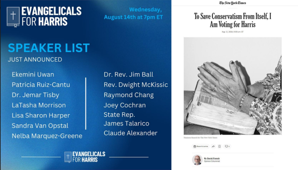 As I’ve shown in this review, some of Basham’s criticisms are inaccurate or unfair. But not all of them are. Two weeks after Basham’s book was published, a group called “Evangelicals for Harris” and political commentator David French were kind enough to run a marketing campaign on her behalf, showing exactly why so many evangelicals are rightly concerned.