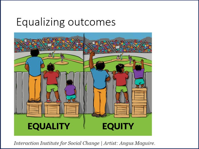 Second, let’s talk about “equity” which is often contrasted with “formal equality.” “Formal equality” or “procedural equality” means that laws and policies treat everyone exactly the same. But does that guarantee actual equality of opportunity? Not necessarily. Simple example: after the Civil War and the 13th and 14th Amendments, former slaves had all the formal, legal rights and privileges of other American citizens in theory. Does it follow that they had the same opportunities? Or even the same legal rights in practice? Absolutely not. Many of them ended up as sharecroppers whose lives were only marginally better than they had been under slavery. So formal equality under law does not guarantee equality of opportunity.