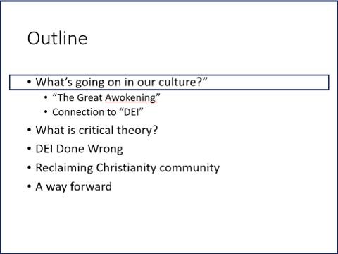 Here’s my outline. First, I’d like to show you that something is happening to our culture, impacting everything from social media, to entertainment, to education, to DEI training.