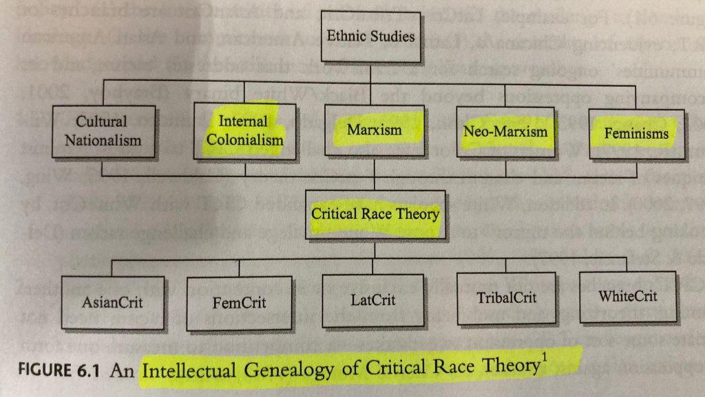 Yosso’s “Whose Culture Has Capital?” is another seminal paper, having been cited over 10,000 times. Note not only the “intellectual genealogy of CRT” that she provides, but the similarity of her “five tenets of CRT” to those of other scholars. People who claim that CRT is so nebulous and varied that it defies definition are incorrect.