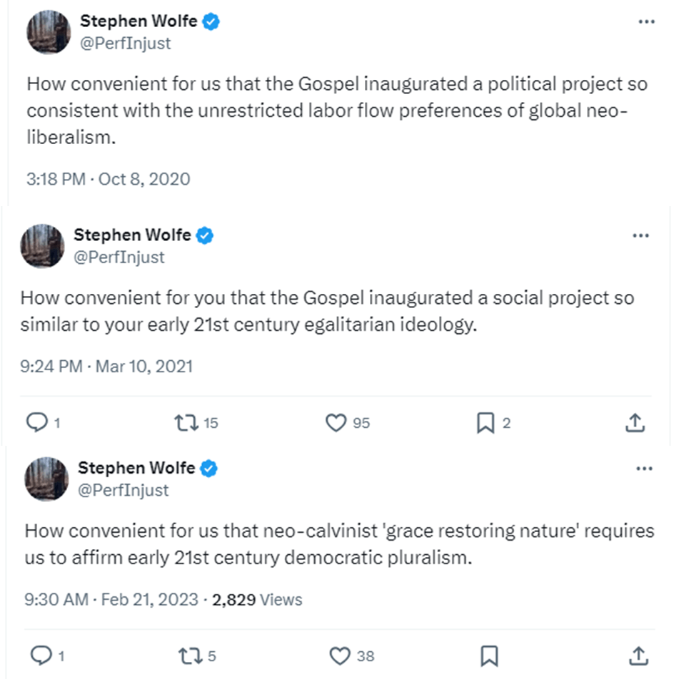 Compare that reasoning to these Tweets from Stephen Wolfe: